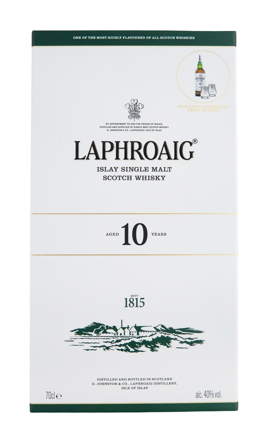 Laphroaig 10 Jahre Single Malt Scotch Whisky + 2 Gläser - 0,7L 40% vol