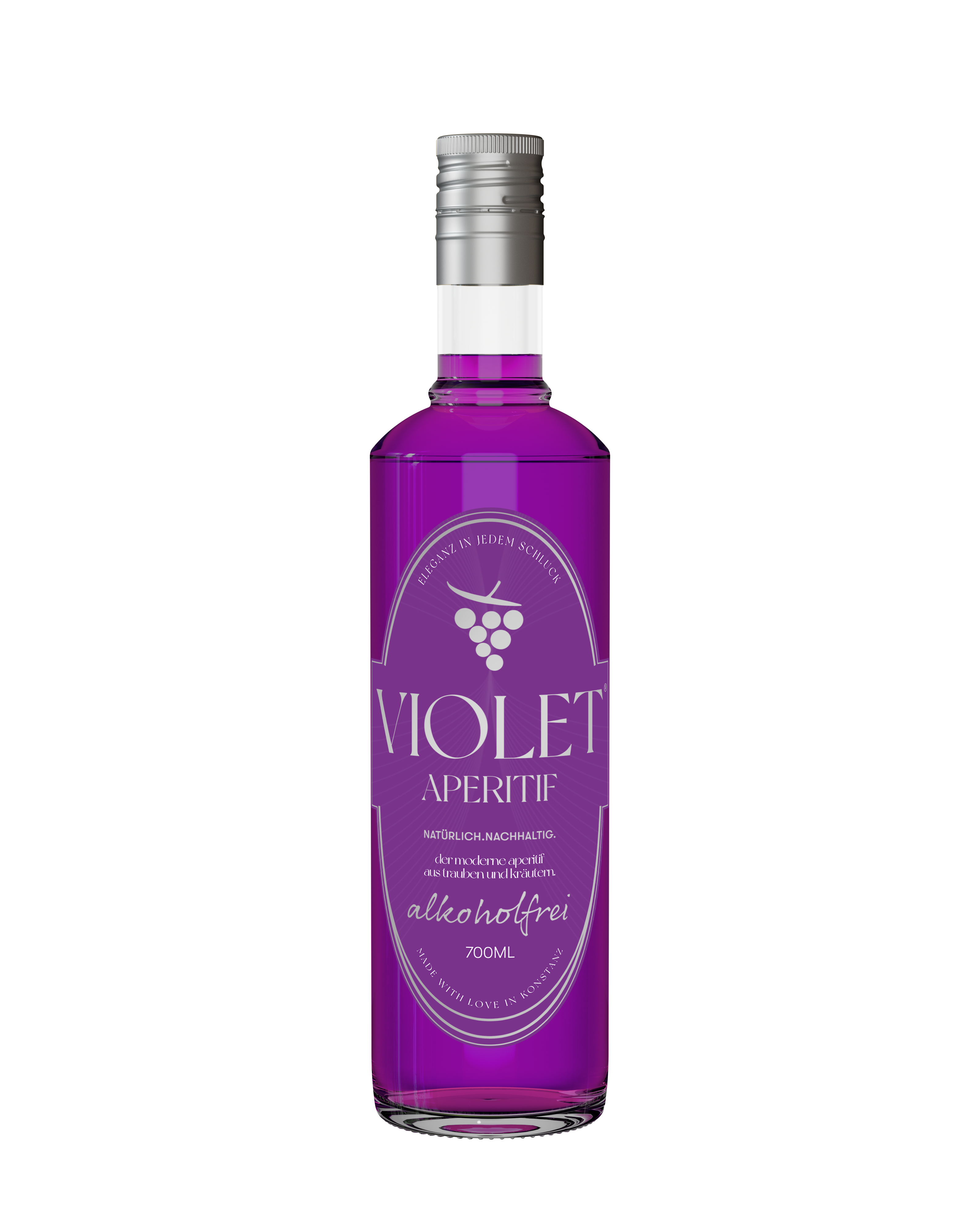 Der Violet Aperitif ist ein alkoholfreier Aperitif aus Deutschland, der mit seiner eleganten Komposition aus Trauben, Kräutern und fruchtigen Komponenten überzeugt. In der 0,7 Liter Flasche vereint er frische, natürliche Aromen mit einer dezenten Bitterkeit – perfekt für stilvolle Momente ganz ohne Alkohol.