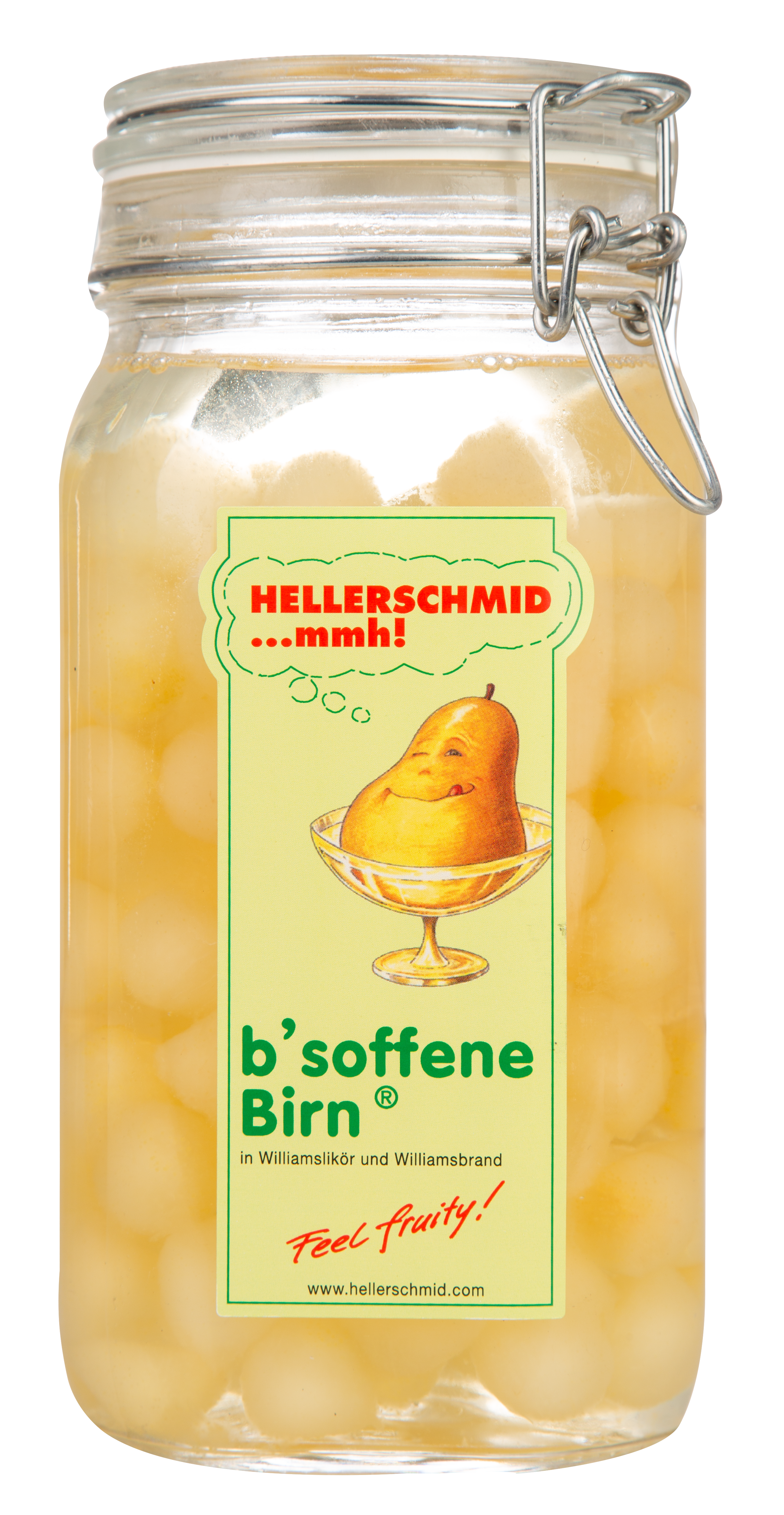 Entdecken Sie die köstliche österreichische Spezialität Hellerschmid B'soffene Birn, präsentiert in einem großzügigen 1,5-Liter-Einmach-Glas mit Bügel-Verschluss. Mit einem Alkoholgehalt von 19% vol. bieten die Birnenbällchen eine herrlich süße Erfahrung, eingetaucht in eine Mischung aus Williams-Likör und Williams-Brand. Diese Delikatesse ist nicht nur ein Genuss auf den Après-Ski-Pisten der Alpen, sondern auch perfekt für besondere Anlässe und zum Verwöhnen der Sinne geeignet.